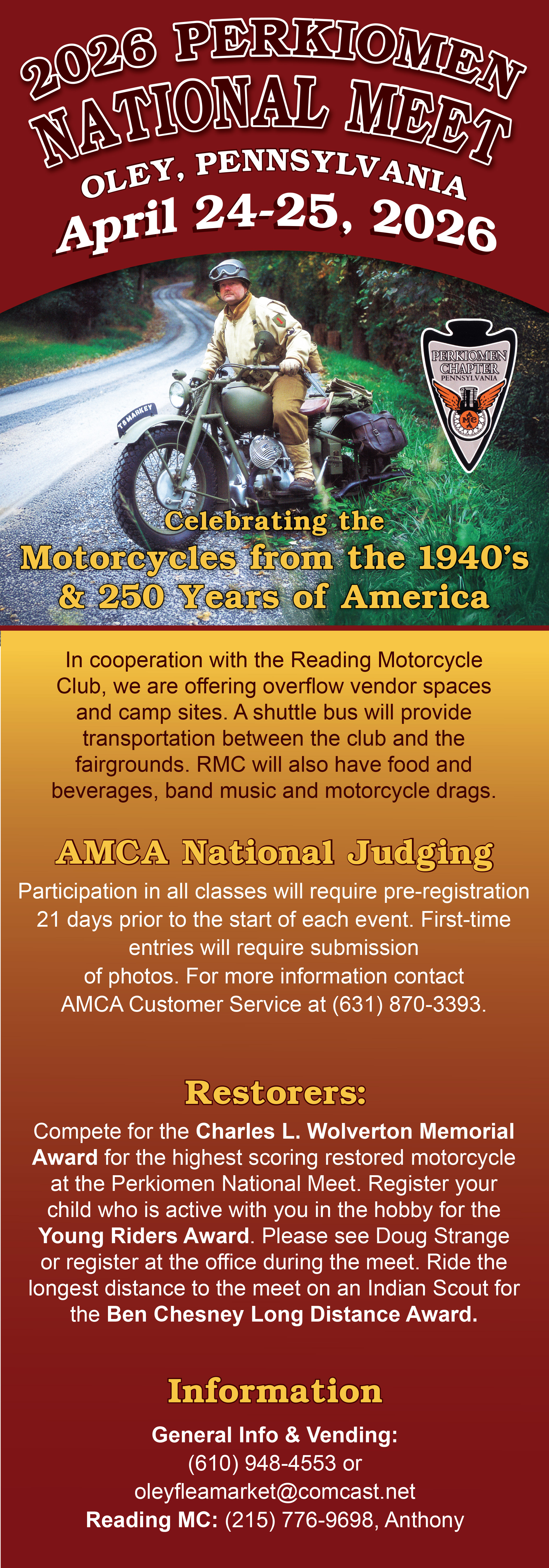 AMCA National Judging will be for all motorcycles 35+ years old.